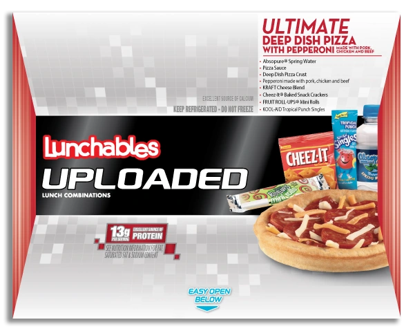 Ultimate Deep Dish Pizza was a kind of Uploaded Lunchable. It seemed to have a thicker crust, more cheese, and it could also come with bacon as a topping. There was another variety of this Lunchable with double cheese.